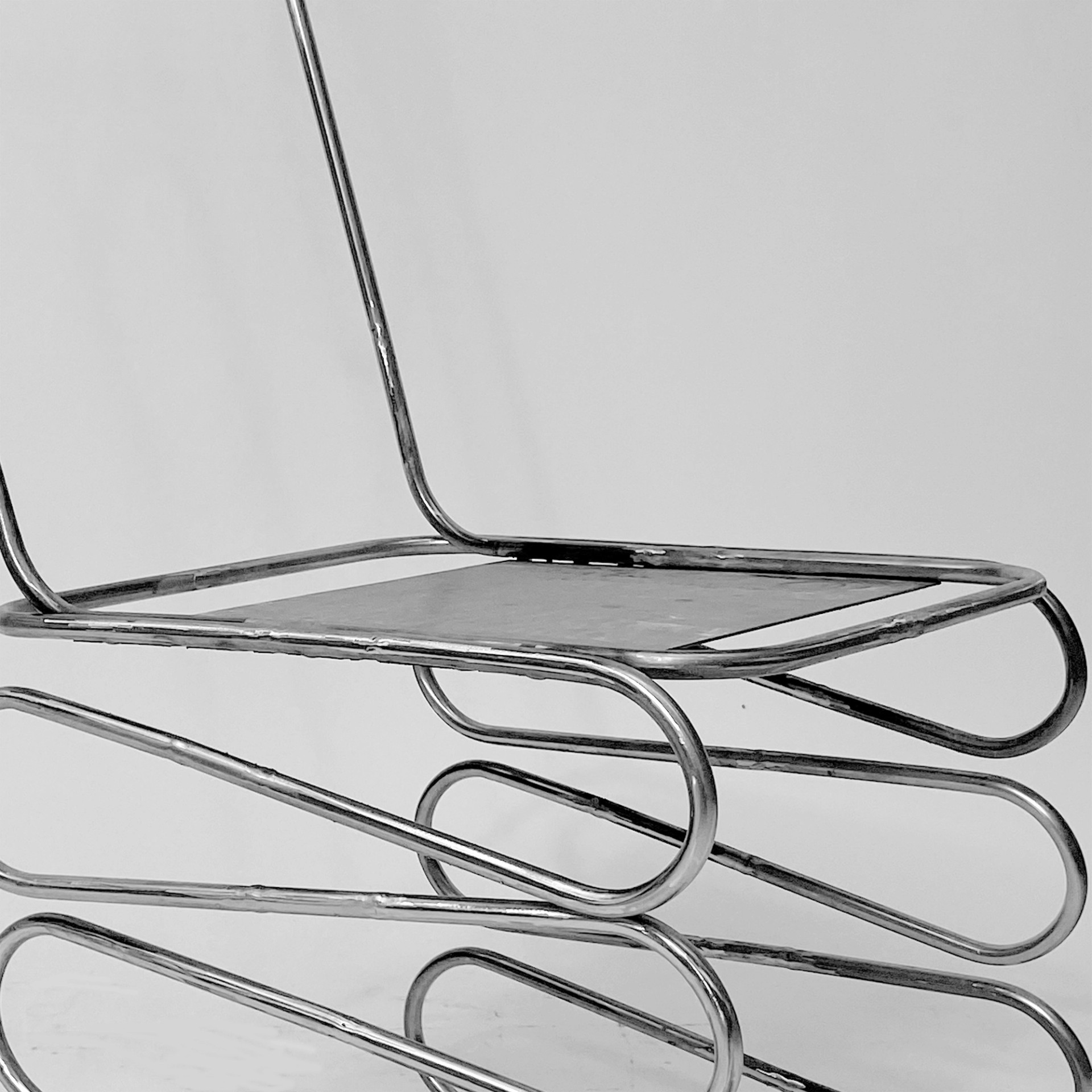 Despite its lightweight structure and minimalist appearance, spot welding ensures solid stability while maintaining a clean aesthetic. The most distinctive feature of the design lies in its “playful and bouncy” experience. Through bending and shaping the steel, it acquires spring-like properties, encouraging users to interact with it and offering a surprising sense of movement.